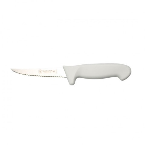 Gladiator Utility Slicer, 5", serrated edge, hand honed edge, forged, high carbon stainless steel, plastic handle, white, NSF (clam packed)