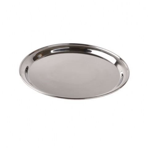 Service Tray, 10" dia., round, mirror polished, 22 gauge, stainless steel