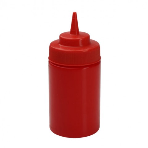 Squeeze Bottle, 12 oz., wide mouth, heavy duty plastic, red