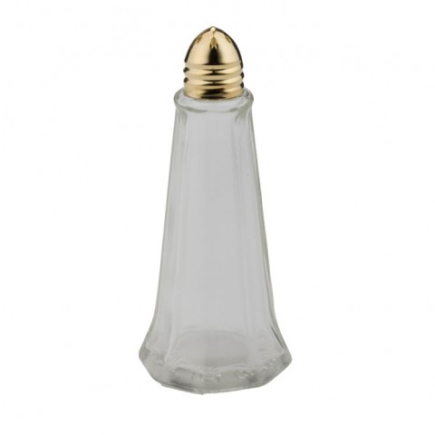 Salt/Pepper Shaker, 1 oz., tower, with stainless steel gold plated bullet cap, glass