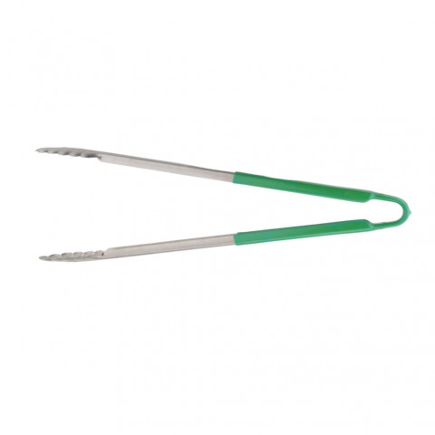 Tongs, 16", stainless steel, plastic coated handle, green
