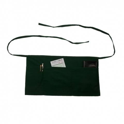 Waist Apron, 22" x 12", (2) 8" x 8" pocket, (1) pencil pocket, 35" cloth ties, 65/35 poly/cotton twill, hunter green (individually packaged with barcode)