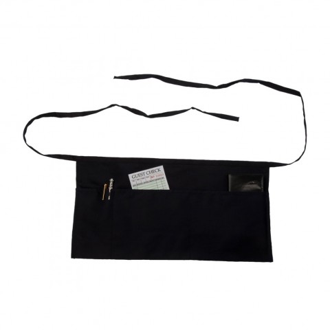 Waist Apron, 22" x 12", (2) 8" x 8" pocket, (1) pencil pocket, 35" cloth ties, 65/35 poly/cotton twill, navy blue (individually packaged with barcode)