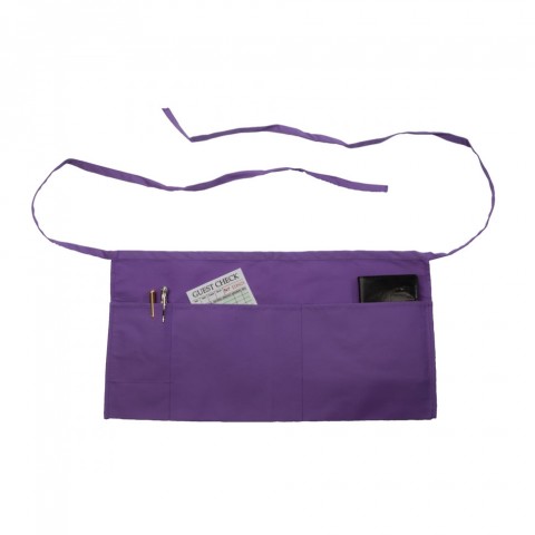Waist Apron, 22" x 12", (2) 8" x 8" pocket, (1) pencil pocket, 35" cloth ties, 65/35 poly/cotton twill, purple (individually packaged with barcode)