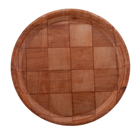 Tray, 13" dia., round, woven, 5-ply, solid wood veneer