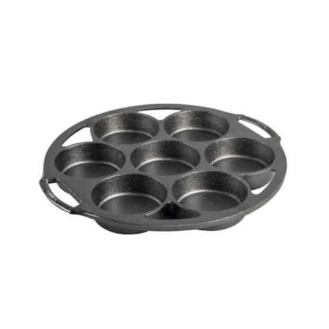 Mini Cake Pan, 12-3/10"W x 11-1/2"D x 1-1/10"H, (7) 3-3/10" dia. cake, seasoned cast iron, PFOA & PTFE free material, Made in the USA