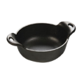 Mini Server, 12 oz., 5" dia. x 2-3/8"H (exterior), round, with handles, heat-treated (rust resistant), stove top/induction/grill/campfire/oven safe, seasoned with oil, dishwasher safe, cast iron, Made in USA