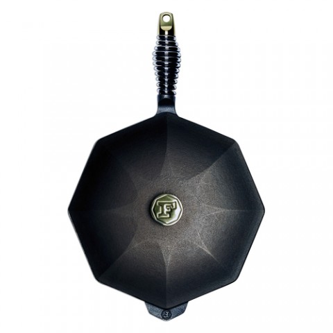 Finex® Skillet, 12" x 4-1/2"H, octagonal, with lid, refrigerator/gas/electric/ceramic/induction/stove top/grill/campfire/oven safe, hand wash only, pre-seasoned, stainless steel spring handle, cast iron