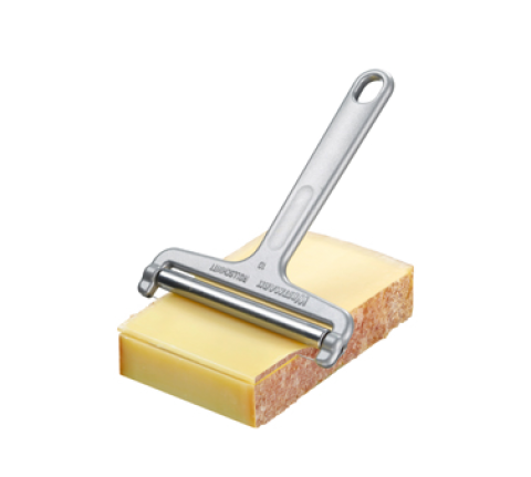 Cheese Cutter, hand held, thickness of slice is depends on angle the cutter is held, dishwasher safe, stainless steel wire, cast aluminum