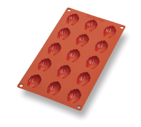 Gastroflex® Mini Madeleine Mold, 15 per sheet, 1-3/4"L x 1-5/16"W x 3/8"H mini-madeleines, sheet size 11-3/16”L x 6-7/8”W, flexible, freezer to oven, temp resistance from -58°F to 482°F, dishwasher safe, food grade silicone, made in France
