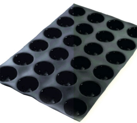 Flexipan® Muffin Mold, 24 per sheet, 4 oz. cap., 2-3/4" dia. x 2-3/16"H, sheet size: 23-3/4"L x 15-3/4"W, non-stick, withstands temperatures from -40°F to +580°F, flexible, reusable 2,000 to 3,000 times, food grade silicone, NSF, made in France