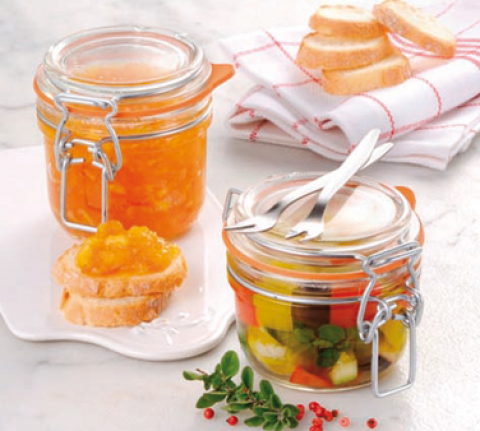 Appetizer/Jam Jar, 8 oz., 3-1/8" dia. x 3-1/8"H, with seal and clamp, glass (pack of 6)