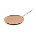 Elite Crepe Pan, 11" 3/4"H, non-stick, riveted stainless steel handle, hanging handle loop, lacquered exterior, aluminum with ceramic coating (PTFE Free), suitable for gas, electric, ceramic, halogen, and induction hobs, (made in France)