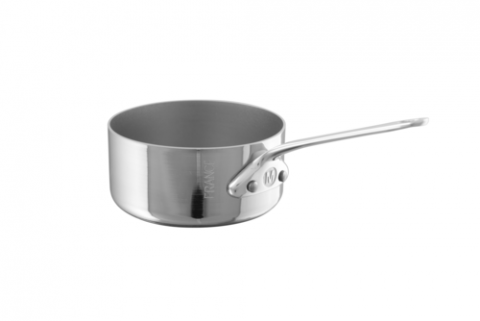 M'Minis Mini Sauté Pan, 3.2 oz. (0.1 liter), 2-3/4" dia. x 1-3/5"H, round, without lid, straight edge, pour edge, riveted cast stainless steel handle, gas/electric/halogen, 18/10 stainless steel, polished finish