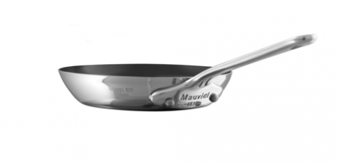 M'Minis Mini Fry Pan, 4-4/5" dia. x 9/10"H, round, non-stick, reinforced non-drip edge, riveted cast stainless steel handle, oven safe to 680° F, 5-ply 18/10 stainless steel, polished finish