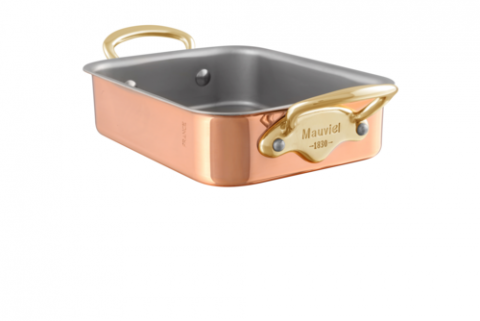 M'Minis Roaster Pan, 7"W x 5-1/2"D x 1-4/5"H, rectangular, straight edge, riveted bronze handle, 1.5mm, stainless steel interior, copper exterior