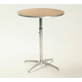 Standard Pedestal Table, round top, 5/8" plywood top (edge to be specified), adjustable chrome plated steel column with die cast aluminum base and mounting plate, 36" dia., 30", 36", & 42" high, chrome steel glides std.