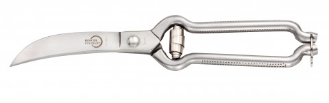 Poultry Shears, 9-1/2" overall length, fine toothed blade edge, safety lock, textured grip handles, hot forged stainless steel