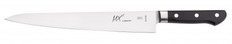 MX3® Sujihiki Knife, 240mm (9-1/2"), one-piece, full tang, forged, 3-layer, Japanese VG-10 super-steel core blade, taper-ground edge, triple riveted, ergonomic Delrin® handles
