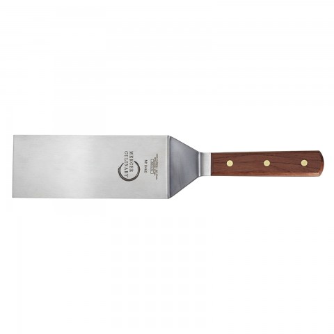 Praxis® Turner, 8" x 3", 15" overall length, square edge, high carbon, Japanese stainless steel blade, rosewood handle with (3) brass compression rivets
