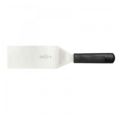 Millennia® Turner, 6"L x 3"W, 13-1/2" overall length, square edge, solid Japanese steel blade, molded polypropylene handle for an extra-sure grip, NSF