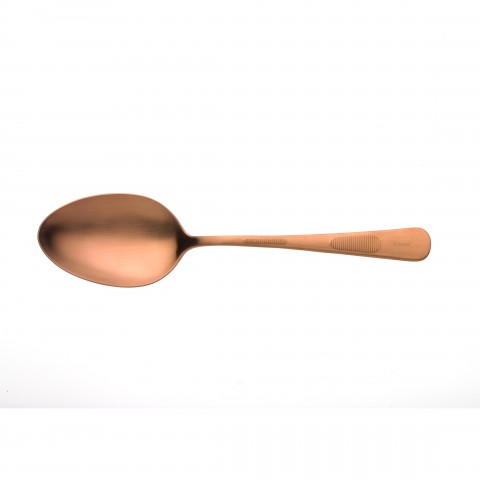 Plating Spoon, 1-1/3 oz., 9"L, solid, deep well bowl with mirror finish, dual micro-serration for better grip and control, satin finish handle, 18/8 stainless steel core, rose gold