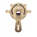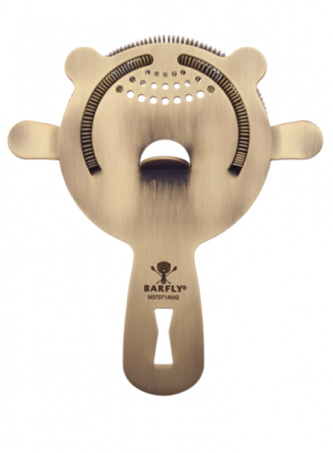 Barfly® Spring Bar Strainer, 5-5/8" overall length, heavy duty, 4-prong, replaceable spring, hanging hole, 18/8 stainless steel core, Antique Gold-plated finish