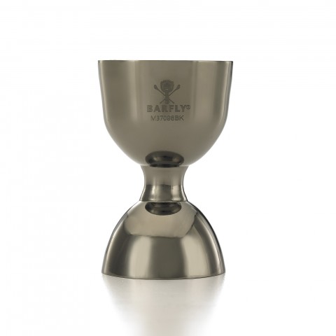 Barfly® Straight Rim Jigger, 25 & 50 ml (0.67 & 1.69 oz.), heavy duty, one-piece, with internal marking lines, 18/8 stainless steel, gun metal black finish