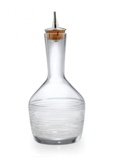 Barfly® Bitters Bottle, 6.8 oz. (200 ml.), contemporary styling, 3-1/8" dia. x 7"H, glass, stainless steel dasher top with cork