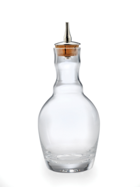 Barfly® Bitters Bottle, 7.4 oz. (220 ml.), contemporary styling, 2-7/8" dia. x 6-1/2"H, glass, stainless steel dasher top with cork