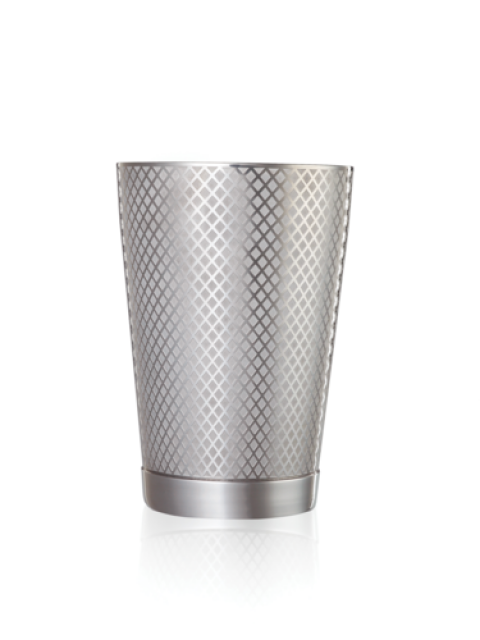 Barfly® Diamond Lattice Shaker, 18 oz., 3-1/2" dia. x 5"H, capped bottom, 18/8 stainless steel, satin finish interior, intricate etched finish exterior