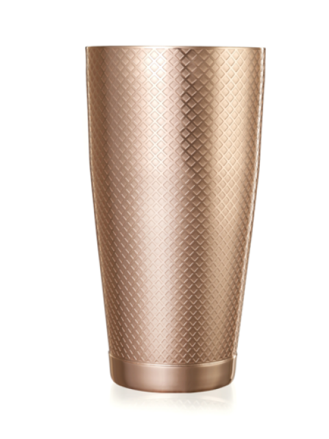 Barfly® Diamond Lattice Shaker, 28 oz., 3-5/8" dia. x 7"H, capped bottom, 18/8 stainless steel, satin finish interior, copper-plated exterior finish, intricate etched pattern design