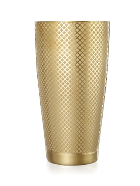 Barfly® Diamond Lattice Shaker, 28 oz., 3-5/8" dia. x 7"H, capped bottom, 18/8 stainless steel, satin finish interior, gold-plated exterior finish, intricate etched pattern design