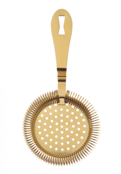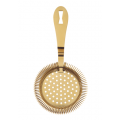 Barfly® Deluxe Antique Hawthorne Bar Strainer, 7 1/4" overall length, hanging hole, 18/8 stainless steel, Gold-plated finish