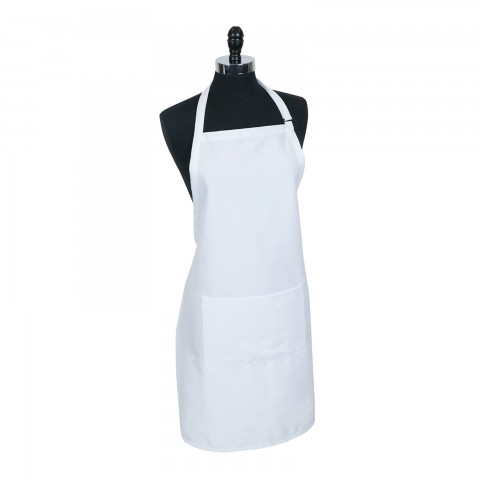 Genesis Bib Apron, 33" x 23", with pocket, adjustable neck strip, 65/35 poly/cotton twill, white