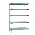 MetroMax® 4 Add-On Shelving Unit, 24"W x 24"D x 74"H, rust proof, 800 lb capacity per shelf, 2000 lb. capacity per unit, includes: (5) open grid polymer shelves with removable shelf mats, bag of (4) wedge connectors for each shelf, (2) polymer posts & (10) "S" hooks for an end-to-end configuration, Microban antimicrobial product protection, KD, NSF