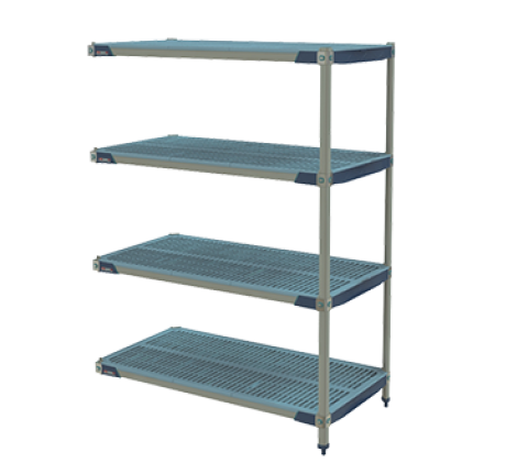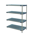 MetroMax® i Add-On Shelving Unit, 30"W x 18"D x 63"H, rust proof, 1000 lb capacity per shelf, 2000 lb. capacity per unit, includes: (4) open grid polymer shelves with reinforced type 304 stainless steel corners and removable polymer shelf mats, bag of (4) wedge connectors included with each shelf, (2) polymer posts & (8) "S"Hooks for an end-to-end configuration, Microban antimicrobial product protection, KD, NSF