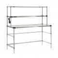 Super Erecta® Workstation with Hot Open Heated Shelf, 3-sided open base, 60"W x 24"D stainless steel work surface, (1) 60"W x 14"D heated shelf, adjustable thermostat to 200°F max temperature, (1) overhead wire shelf, chrome plated wire & posts, 120v/60/1-ph, 600 watts, 5.0 amps, cord & NEMA 5-15P, NSF, cULus, Made in USA