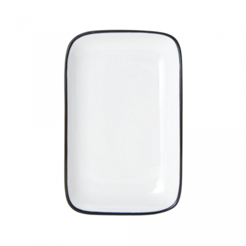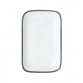 Bistro Plate, 8"L x 4-3/5"W, rectangular, coupe, dishwasher, microwave, freezer and oven safe, vitrified porcelain, white with black band (must be purchased in case quantities)