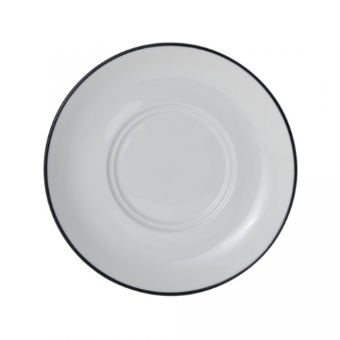 Bistro Saucer, 6-3/4" dia., round, dishwasher, microwave, freezer and oven safe, vitrified porcelain, white with black band (fits 5260394) (must be purchased in case quantities)