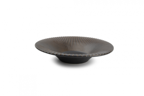F2D, Brass, deep Plate, 10.2"W, stripe silver, porcelain, dishwasher, microwave & oven safe, brass