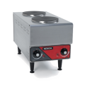 Hotplate, two burner, 11-3/8" W, brushed stainless steel construction, cast iron alloy burners, six position temperature control, built in thermo protection, (2) x 1.5 elements, 240v/60/1ph, 3000 watts, 12.5 amps, cord & NEMA 6-15P