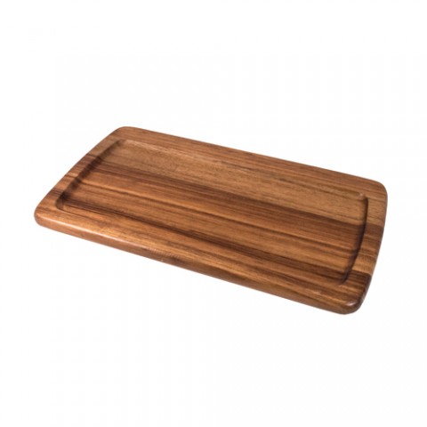 Plate, medium, 14" x 8", rectangular, dishwasher safe, acacia wood, natural