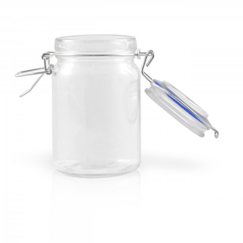 Cocktails & Events Seal Jar, 6.8 oz., 2.3" dia. x 4.5"H, mini, round, with locking hinged lid, dark blue rubber seal, microwaveable, dishwasher safe, reusable, recyclable, glass, clear, (Per case = 24 each)