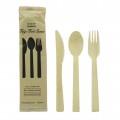 Cutlery 3/1 Kit, 8.6"L, includes: (1) 5.5" knife, (1) 6.65" fork, (1) 6.65" spoon, wrapped in Kraft paper, compostable, biodegradable, bamboo, natural, (Per case = 100 each)