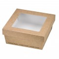 Kray Take Out Box, 22 oz., base: 4.7" x 4.7" x 2", lid: 5.3" x 5.3", square, with steam proof window, microwaveable base, grease resistant, freezer safe, recyclable, Kraft paper, brown, (Per case = 250 each)