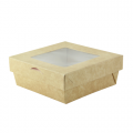 Kray Box with PET Lid, 6.1"W x 6.1"D x 2"H, 34oz., up to 440°F (base only), Bakeable, kraft (per case = 100 each)