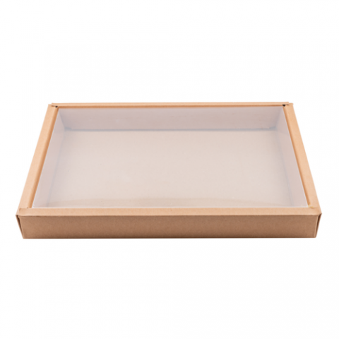 Combo Set Box, 8.5"W x 12.2"D x 1.4"H, clear lid, recyclable, disposable, kraft (Per Case = 500 each)