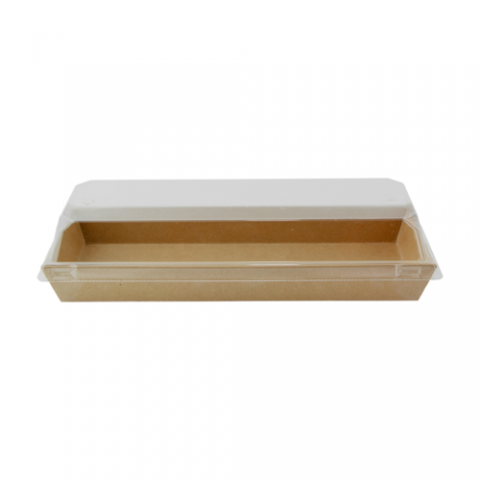 Sushi box with PET lid, 14oz., Base: 8.5"W x 3"D x 1"H, Lid: 8.8"W x 3.4"D x 1.2"H, kraft (per case = 300 each)