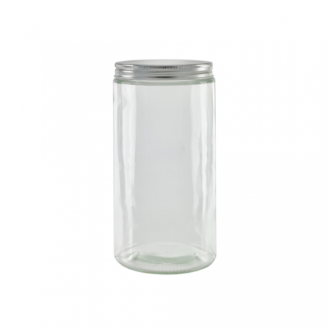 Glass Jar, 33.8 oz, 3.66"W x 3.42"D x 7.36"H, with aluminium cap, round, reusable (Per case = 30 each)